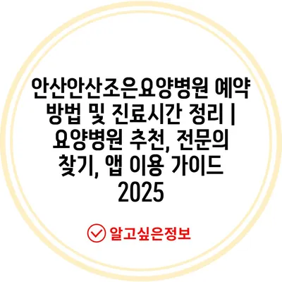 안산안산조은요양병원 예약 방법 및 진료시간 정리 | 요양병원 추천, 전문의 찾기, 앱 이용 가이드 2025