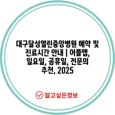 대구달성열린중앙병원 예약 및 진료시간 공지 | 어플앱, 일요일, 공휴일, 전연락 추천, 2025에 대해 자주 묻는 질문 TOP 5