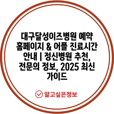 대구달성이즈병원 예약 홈페이지 & 어플 진료시간 공지 | 정신병원 추천, 전연락 정보, 2025 최신 설명서에 대해 알아보겠습니다.