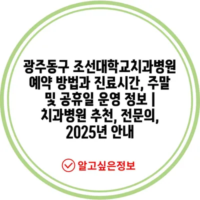 광주동구 조선대학교치과병원 예약 방법과 진료시간, 주말 및 공휴일 운영 정보 | 치과병원 추천, 전문의, 2025년 안내