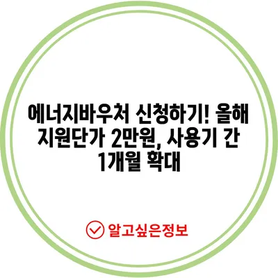 💡 에너지 바우처 지원 내용과 신청 방법을 지금 바로 알아보세요! 💡