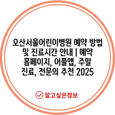 ✅ 오산서울어린이병원의 진료시간과 예약 방법을 쉽게 알아보세요.
