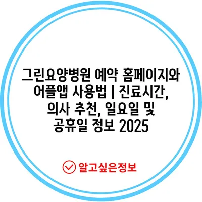 그린요양병원 예약 홈페이지와 어플앱 사용법 | 진료시간, 의사 추천, 일요일 및 공휴일 정보 2025