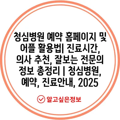 청심병원 예약 홈페이지 및 어플 활용법| 진료시간, 의사 추천, 잘보는 전문의 정보 총정리 | 청심병원, 예약, 진료안내, 2025