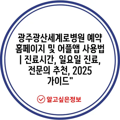 광주광산세계로병원 예약 홈페이지 및 어플앱 사용법 | 진료시간, 일요일 진료, 전연락 추천, 2025 설명서에 대해 자주 묻는 질문 TOP 5