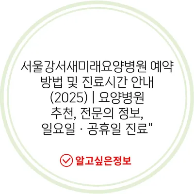 서울강서새미래요양병원 예약 방법 및 진료시간 안내 (2025) | 요양병원 추천, 전문의 정보, 일요일·공휴일 진료”