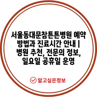 ✅ 서울동대문참튼튼병원 예약 방법과 운영 시간을 지금 확인해 보세요.