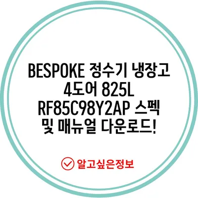 BESPOKE 정수기 냉장고 4도어 825L RF85C98Y2AP 스펙 및 매뉴얼 다운로드!