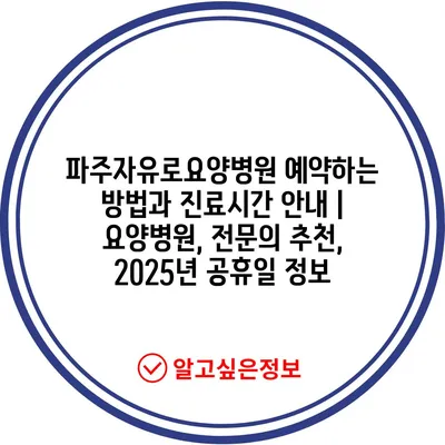 파주자유로요양병원 예약하는 방법과 진료시간 공지 | 요양병원, 전연락 추천, 2025년 공휴일 정보 에 대해 자주 묻는 질문 TOP 5