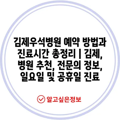 ✅ 김제우석병원의 예약 방법과 진료시간을 자세히 알아보세요.
