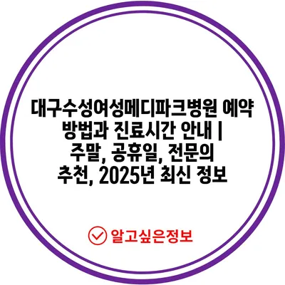 대구수성여성메디파크병원 예약 방법과 진료시간 공지 | 주말, 공휴일, 전연락 추천, 2025년 최신 정보 에 대해 자주 묻는 질문 TOP 5