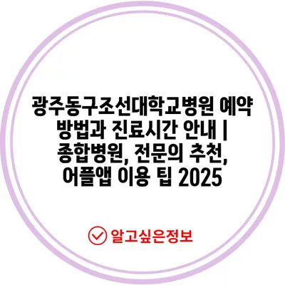 광주동구조선대학교병원 예약 방법과 진료시간 공지 | 종합병원, 전연락 추천, 어플앱 이용 팁 2025