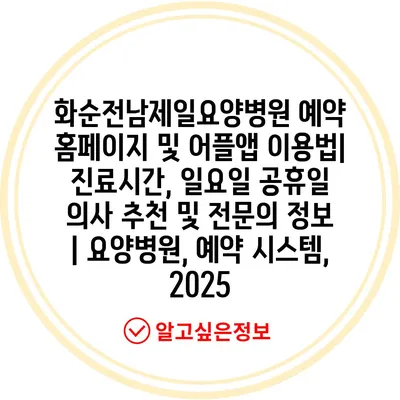 화순전남제일요양병원 예약 홈페이지 및 어플앱 이용법| 진료시간, 일요일 공휴일 의사 추천 및 전연락 정보 | 요양병원, 예약 시스템, 2025