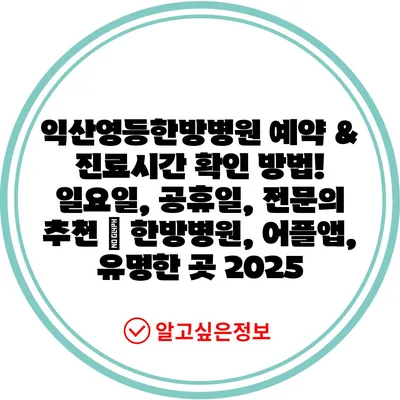 ✅ 익산영등한방병원의 예약 방법과 진료시간을 알아보세요.