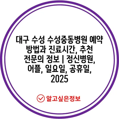 대구 수성 수성중동병원 예약 방법과 진료시간, 추천 전연락 정보 | 정신병원, 어플, 일요일, 공휴일, 2025 에 대해 자주 묻는 질문 TOP 5