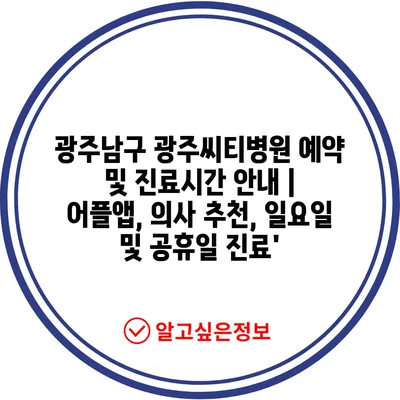 광주남구 광주씨티병원 예약 및 진료시간 공지 | 어플앱, 의사 추천, 일요일 및 공휴일 진료