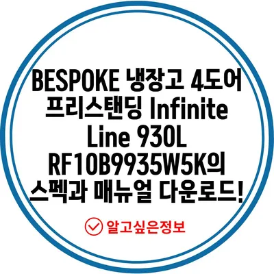 BESPOKE 냉장고 4도어 프리스탠딩 Infinite Line 930L RF10B9935W5K의 스펙과 매뉴얼 다운로드!