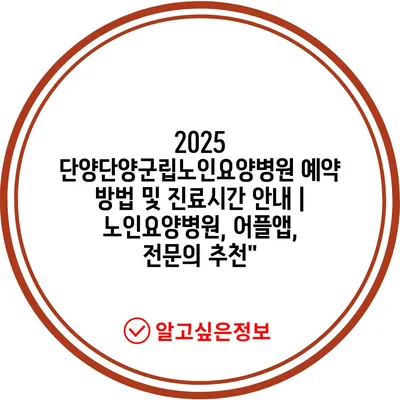 ✅ 2025 단양군립노인요양병원 예약 방법을 알아보세요.