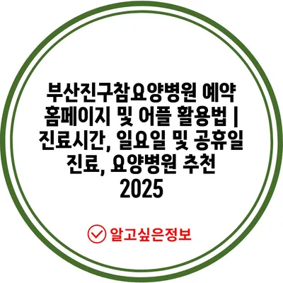 부산진구참요양병원 예약 홈페이지 및 어플 활용법 | 진료시간, 일요일 및 공휴일 진료, 요양병원 추천 2025