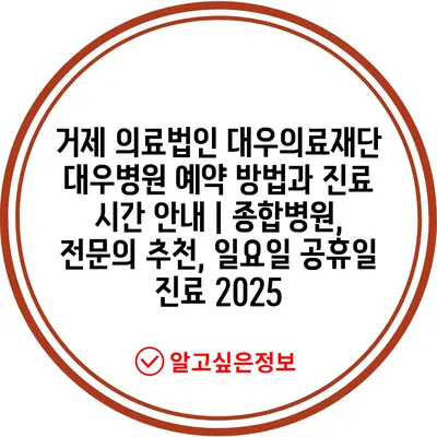 거제 의료법인 대우의료재단 대우병원 예약 방법과 진료 시간 공지 | 종합병원, 전연락 추천, 일요일 공휴일 진료 2025 에 대해 자주 묻는 질문 TOP 5