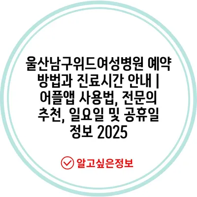 울산남구위드여성병원 예약 방법과 진료시간 안내 | 어플앱 사용법, 전문의 추천, 일요일 및 공휴일 정보 2025