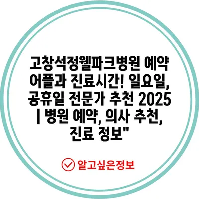 고창석정웰파크병원 예약 어플과 진료시간! 일요일, 공휴일 전문가 추천 2025 | 병원 예약, 의사 추천, 진료 정보