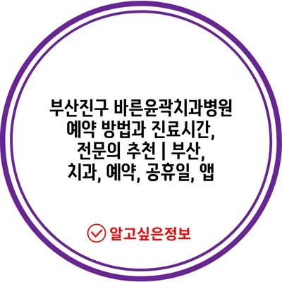 ✅ 부산진구 바른윤곽치과병원의 예약 팁과 진료 정보를 확인해 보세요.