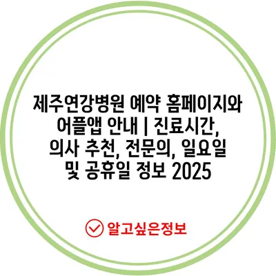 제주연강병원 예약 홈페이지와 어플앱 공지 | 진료시간, 의사 추천, 전연락, 일요일 및 공휴일 정보 2025를 소개합니다.
