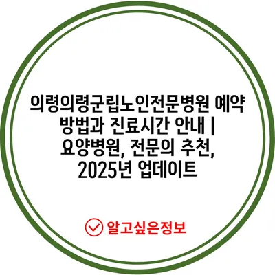 의령의령군립노인전문병원 예약 방법과 진료시간 공지 | 요양병원, 전연락 추천, 2025년 업데이트 에 대해 자주 묻는 질문 TOP 5