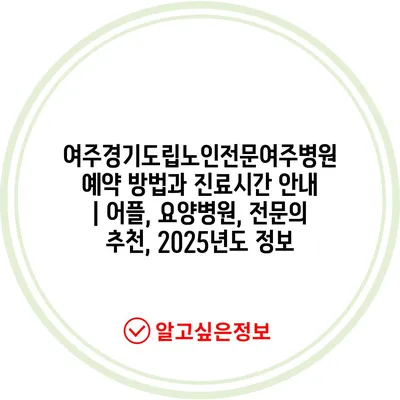 여주경기도립노인전문여주병원 예약 방법과 진료시간 공지 | 어플, 요양병원, 전연락 추천, 2025년도 정보 에 대해 자주 묻는 질문 TOP 5