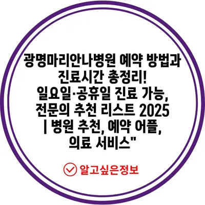 광명마리안나병원 예약 방법과 진료시간 총정리! 일요일·공휴일 진료 가능, 전연락 추천 리스트 2025 | 병원 추천, 예약 어플, 의료 서비스” 에 대해 자주 묻는 질문 TOP 5