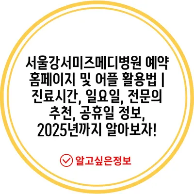 서울강서미즈메디병원 예약 홈페이지 및 어플 활용법 | 진료시간, 일요일, 전연락 추천, 공휴일 정보, 2025년까지 알아보자! 에 대해 자주 묻는 질문 TOP 5