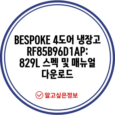 BESPOKE 4도어 냉장고 RF85B96D1AP: 829L 스펙 및 매뉴얼 다운로드