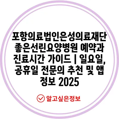포항의료법인은성의료재단 좋은선린요양병원 예약과 진료시간 가이드 | 일요일, 공휴일 전문의 추천 및 앱 정보 2025