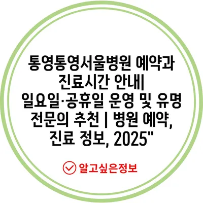 통영통영서울병원 예약과 진료시간 공지| 일요일·공휴일 운영 및 유명 전연락 추천 | 병원 예약, 진료 정보, 2025