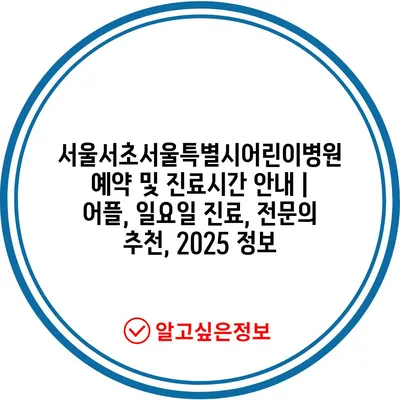 서울서초서울특별시어린이병원 예약 및 진료시간 공지 | 어플, 일요일 진료, 전연락 추천, 2025 정보에 대해 자주 묻는 질문 TOP 5