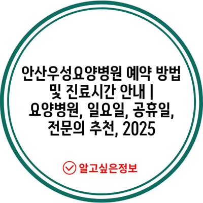 안산우성요양병원 예약 방법 및 진료시간 공지 | 요양병원, 일요일, 공휴일, 전연락 추천, 2025 에 대해 자주 묻는 질문 TOP 5