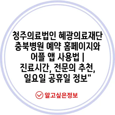 청주의료법인 혜광의료재단 충북병원 예약 홈페이지와 어플 앱 사용법 | 진료시간, 전연락 추천, 일요일 공휴일 정보에 대해 자주 묻는 질문 TOP 5