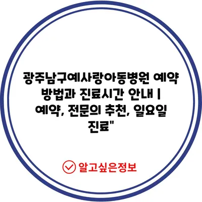 ✅ 광주남구예사랑아동병원 예약 방법을 자세히 알아보세요.