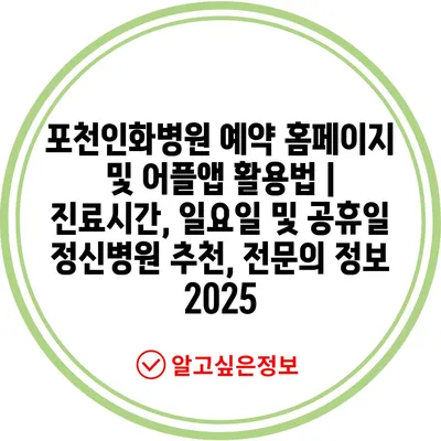 포천인화병원 예약 홈페이지 및 어플앱 활용법 | 진료시간, 일요일 및 공휴일 정신병원 추천, 전연락 정보 2025에 대해 알아보겠습니다.