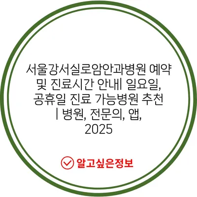 서울강서실로암안과병원 예약 및 진료시간 공지| 일요일, 공휴일 진료 가능병원 추천 | 병원, 전연락, 앱, 2025 에 대해 자주 묻는 질문 TOP 5