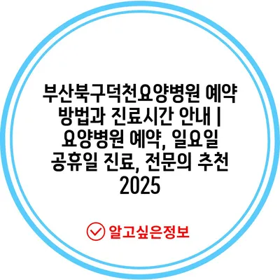 부산북구덕천요양병원 예약 방법과 진료시간 공지 | 요양병원 예약, 일요일 공휴일 진료, 전연락 추천 2025 에 대해 자주 묻는 질문 TOP 5