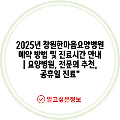 2025년 창원한마음요양병원 예약 방법 및 진료시간 공지 | 요양병원, 전연락 추천, 공휴일 진료” 에 대해 자주 묻는 질문 TOP 5