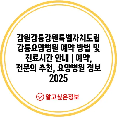 ✅ 강릉요양병원의 예약 절차를 자세히 알아보세요!