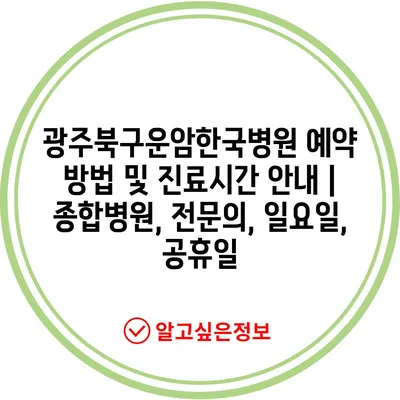 광주북구운암한국병원 예약 방법 및 진료시간 공지 | 종합병원, 전연락, 일요일, 공휴일에 대해 자주 묻는 질문 TOP 5