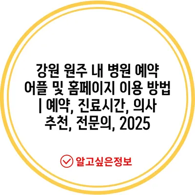 강원 원주 내 병원 예약 어플 및 홈페이지 이용 방법 | 예약, 진료시간, 의사 추천, 전연락, 2025에 대해 자주 묻는 질문 TOP 5