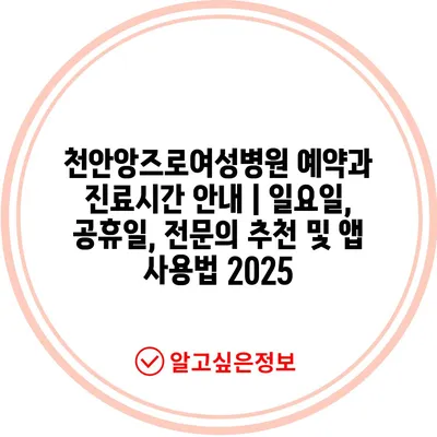 천안앙즈로여성병원 예약과 진료시간 안내 | 일요일, 공휴일, 전문의 추천 및 앱 사용법 2025