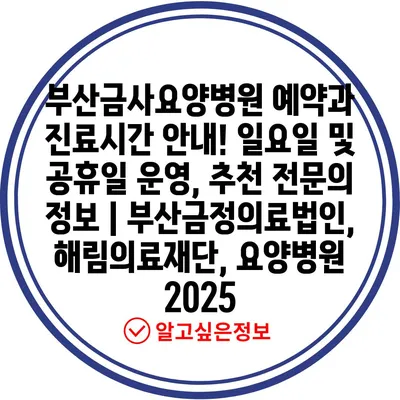 부산금사요양병원 예약과 진료시간 공지! 일요일 및 공휴일 운영, 추천 전연락 정보 | 부산금정의료법인, 해림의료재단, 요양병원 2025