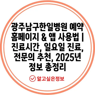 광주남구한일병원 예약 홈페이지 & 앱 사용법 | 진료시간, 일요일 진료, 전연락 추천, 2025년 정보 총정리 에 대해 자주 묻는 질문 TOP 5