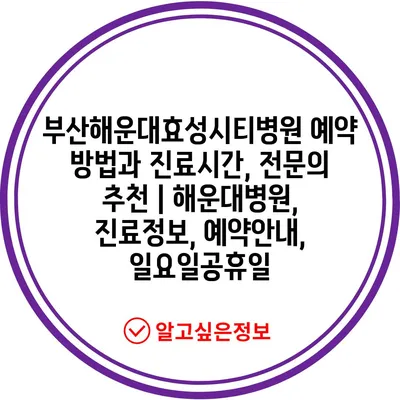 ✅ 해운대효성시티병원의 진료시간과 예약 방법을 지금 바로 알아보세요!